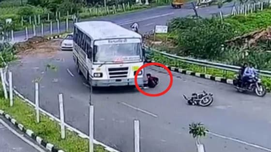 बस के नीचे आ गया बाइक सवार, देखने वालों का भी कांप गया कलेजा..लेकिन फिर जो हुआ वो चमत्कार था