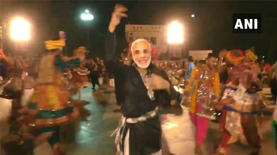 लड़कियों ने लगाया मोदी का मुखौटा और फिर गरबा में मचा दी धूम