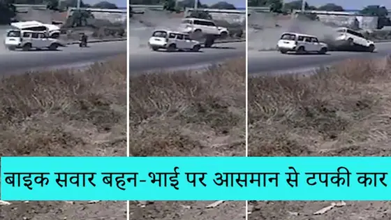 जूनागढ़, गुजरात. शादी की खुशियों से पहले ही एक युवक की हादसे में मौत हो गई। एक बेकाबू कार डिवाइडर से टकराकर हवा में उछलकर बाइक सवार युवक और उसकी चचेरी बहन के ऊपर जा गिरी। एक्सीडेंट में उसकी बहन भी गंभीर रूप से घायल हो गई। घटना केशोद कस्बे में हाईवे पर हुई। समीप लगे एक CCTV कैमरे में पूरी घटना कैप्चर हो गई। इसमें साफ देखा जा सकता है कि कैसे कार डिवाइडर से टकराने के बाद हवा में उछली और फिर वहां से निकल रहे बाइक सवार भाई-बहन के ऊपर जा गिरी। मृतक 23 वर्षीय पंकज देवायतभाई माणियाहाटी तहसील के गांव वांदरवड़ का रहने वाला था। बाइक पर पीछे उसकी चचेरी बहन 20 वर्षीय मधुबेन बैठी थी।
