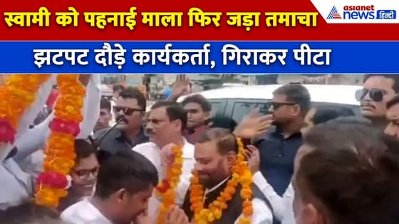 स्वामी प्रसाद मौर्य को पहनाया माला, पीछे से थप्पड़ मार दौड़ा युवक । Swami Prasad Maurya Viral Video