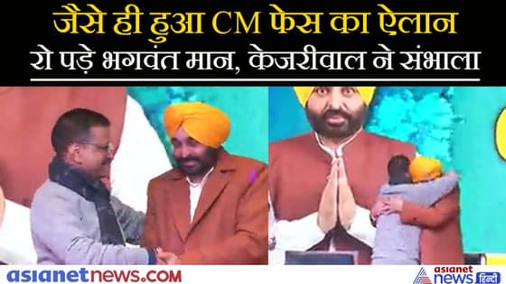 CM कैंडीडेट के नाम की घोषणा होते ही रो पड़े भगवंत मान, केजरीवाल ने लगाया गले-देखें video