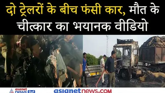 दो ट्रेलरों के बीच में फंस चकनाचूर हुई कार, 5 से 4 लोगों की दर्दनाक मौत, देखें हादसे का भयानक Video