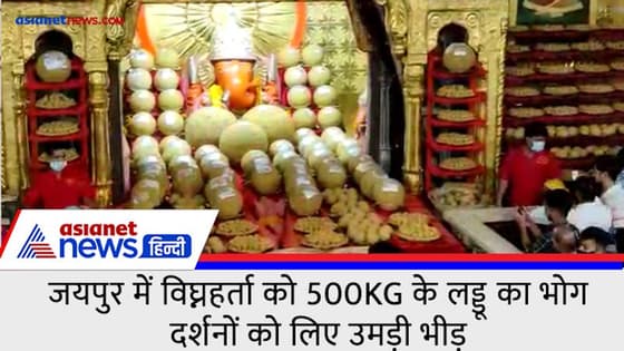 राजस्थान के सबसे बड़े गणेश मंदिर जयपुर में स्थित मोती डूंगरी मंदिर में 500 किलो के लड्डुओं से भगवान का भोग लगाया गया। ऐसा लड्डू बनाया गया कि देखने के लिए लाइन लग गई ये सबसे बडा मोदक, वजन पांच सौ किलो था।