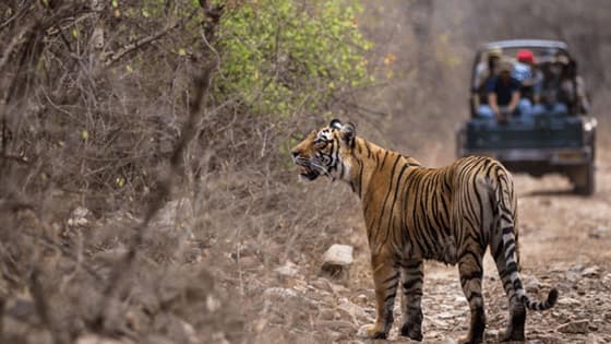 रणथंभौर. जंगल में सैलानियों के एक ग्रुप को सुल्ताना नाम की बाघिन ने हैरान कर दिया। जब पर्यटक अपनी खुली जीप से राजस्थान के रणथंभौर नेशनल पार्क में जंगल के की सैर पर निकले थे तो बाघिन ने उनका पीछा कर लिया। खबरों के मुताबिक यह घटना बाघ रिजर्व रे जोन 1 में हुई। हालांकि बाघिन किसी भी पर्यटक को नुकसान नहीं पहुंचाई। बता दें कि नियमानुसार वाहन को किसी भी जंगली जानवर से कम से कम 50 माटर की दूरी बना रखनी चाहिए।