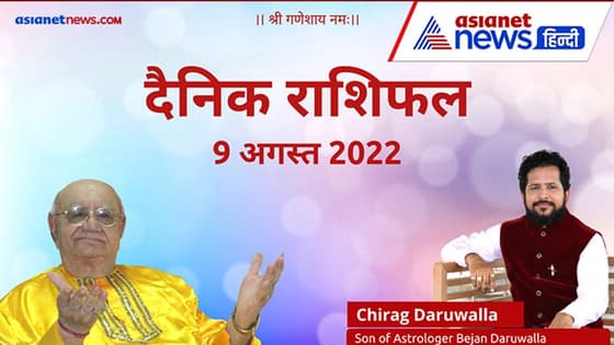 देश के प्रसिद्ध ज्योतिषाचार्य बेजान दारुवाला के बेटे चिराग दारुवाला बता रहे हैं 9 अगस्त 2022 का राशिफल। मेष: अपने लक्ष्यों पर काम करें।वृषभ: बच्चे की वजह से घर का माहौल अच्छा बना रहेगा। मिथुन राशि: घर से जुड़ीं चीजें खरीद सकते हैं।कर्क: सामाजिक क्षेत्र में सम्मान बढ़ेगा। सिंह: कुछ लाभकारी योजनाएं बनेंगी। कन्या: आज लाभ की स्थिति बन रही है। तुला: घर में शांति का माहौल रहेगा। वृश्चिक: मांगलिक समारोह में भाग लेने का अवसर मिलेगा। धनु: सामाजिक मान-प्रतिष्ठा में वृद्धि होगी। मकर: आज आपको लक्ष्य प्राप्त हो सकता है ।कुंभ राशि: घर और व्यवसाय में उचित संतुलन बनाए रखें। मीन राशि: भाग्य की अपेक्षा कर्म में विश्वास रखो।