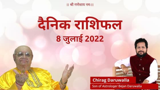 8 जुलाई 2022 को अषाड़ महीने की नवमी तिथि है। बेजान दारूवाला के बेटे चिराग दारूवाला ने 8 जुलाई का राशिफल बताया है। जानें 12 राशियों के लिए कैसा रहेगा 8 जुलाई का दिन। मेष से लेकर मीन राशि वालों का क्या कहता है भाग्य।