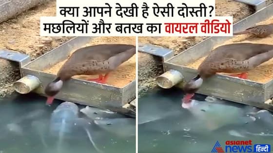 Viral Video : क्या आपने देखी है ऐसी दोस्ती? जब मछलियों को दाना खिलाने लगी बतख