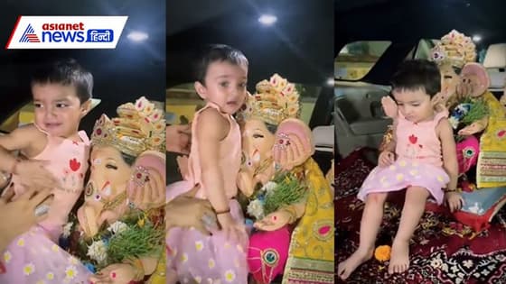 परिवार वाले बच्ची को समझा रहे थे कि बप्पा अपने घर जाएंगे लेकिन बच्ची नहीं समझ रही। कोई उसे बप्पा से दूर न कर दे इसलिए बच्ची गणपति की गोद में बैठ गई। इस बच्चे का वीडियो देख आपका मन भी भावविभोर हो जाएगा।