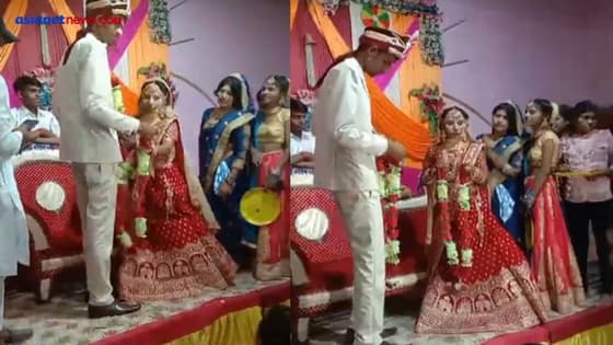 सोशल मीडिया पर दूल्हा दुल्हन के कई वीडियो वायरल होते हैं। ये वीडियो आपको हैरान कर देगा जहां दूल्हे की लंबाई से दुल्हन परेशान हो गई। वरमाला डालने के लिए दुल्हन को काफी मशक्कत करनी पड़ी। देखिए ये वीडियो