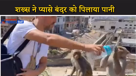 चिलचिलाती गर्मी में प्यासा था बेजुबान, शख्स ने बंदर को बोतल से पिलाया पानी