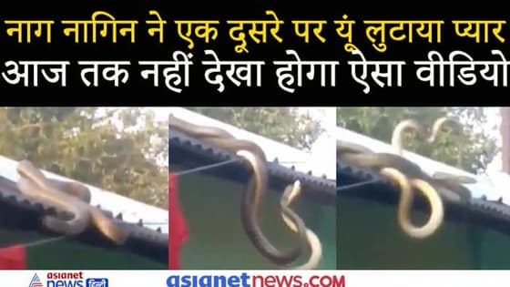 वीडियो डेस्क। सोशल मीडिया में एक सांप के जोड़े का वीडियो खूब वायरल हो रहा है। जिसमें नाग और नागिन का जोड़ा एक दूसरे से प्रेम करते दिखाई दे रहे हैं। करीब ढाई मिनट के वीडियो में नाग और नागिन छत पर हवा लटक एक दूसरे से लिपटे दिखाई दिए।