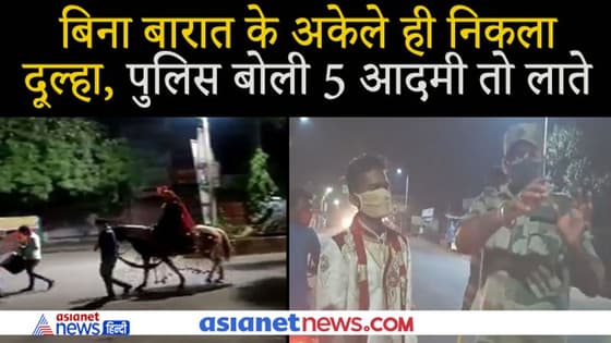 वीडियो डेस्क। कोरोना की दूसरी लहर और फिर देश के कई राज्यों में लगे लॉकडाउन का असर सबसे ज्यादा शादियों पर हुआ है। वैसे सरकार ने 3 घंटे में शादी को निपटाने और 50 रिश्तेदार को शादी में आने की अनुमति दी है। लेकिन कोरोना का डर ऐसा है कि लोग अब घर से बाहर निकलने में कतरा रहे हैं। सोशल मीडिया पर शादी के 2 वीडियो वायरल हो रहे हैं। जिसमें दूल्हे के संग ना बाराती हैं ना बैंड बाजा है। पहले वीडियो में दूल्हा घोड़ी पर बैठा है और साथ में दो लोग ढोल बजाते हुए दिखाई दे रहे हैं। वहीं दूसरे वीडियो में दूल्ह अकेला ही दुल्हन लेने के लिए निकल गया। दूल्हा झारखंड से छत्तीसगढ़ बाइक पर अकेले पहुंच गया। पुलिसवालों में दूल्हे को रोका और कि कम से कम 5 लोग तो लेकर आते।