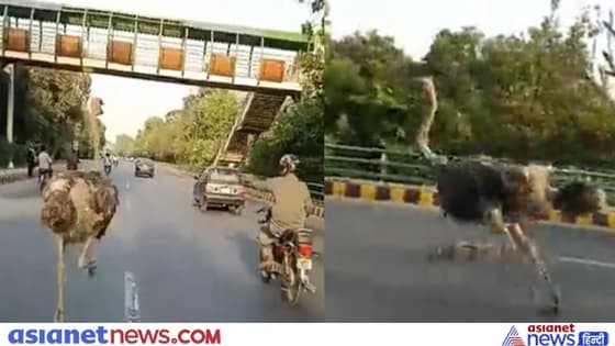 गाड़ियों के बीच चलते रोड़ पर दौड़ता नजर आया शुतुरमुर्ग, वीडियो देख लोग बोले- 'उस्ताद कहां?'