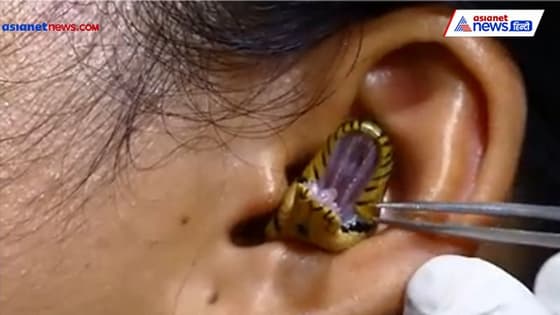 वीडियो में दिखाई दे रहा है कि एक लड़की के कान में सांप घुस गया। हैरान की बात ये है कि सांप मुंह खोलता हुआ दिखाई दे रहा है। दर्द से तड़पती इस लड़की को देख आप भी सहम जाएंगे।