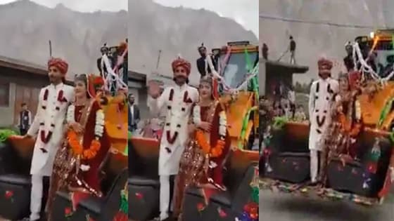ट्रेंडिंग डेस्क : हर इंसान के लिए शादी का दिन बेहद खास होता है। इसे और ज्यादा स्पेशल बनाने के लिए आजकल दूल्हा-दुल्हन कुछ अगल करने की सोचते हैं। ऐसा ही कुछ पाकिस्तान (pakistan) में इन दिनों देखा गया, जहां पर एक दूल्हा घोड़ी-हाथी या कोई लग्जरी गाड़ी में नहीं, बल्कि जेसीबी (JCB) में बारात लेकर दुल्हन के दरवाजे पर पहुंच गया। यह वीडियो पाकिस्तान के हुंजा घाटी का है। सोशल मीडिया पर उनका यह वीडियो तेजी से वायरल हो रहा है कोई इसी एडवेंचर्स बता रहा है तो कोई कह रहा है कि 'कुछ अलग करने के चक्कर में बेज्जती करवा लीं।' आप भी देखें इस अनोखी बारात का वीडियो...