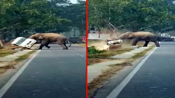एक गुस्साया हाथी सड़क पर जा रही बोलेरो जीप को अपना निशाना बना लेता है। हाथी सड़क पर जा रही बोलेरो को फुटबॉल की तरह उलट-पलट कर देता है।