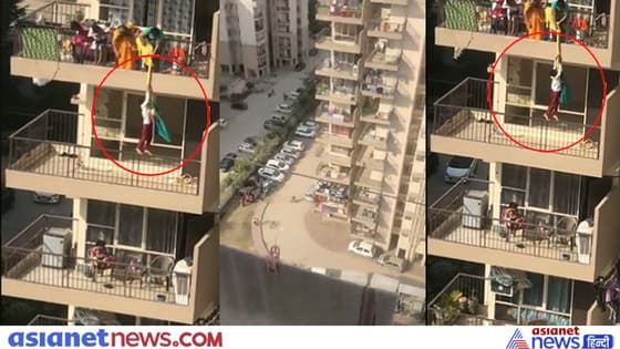 वीडियो डेस्क। सोशल मीडिया पर एक वीडियो तेजी से वायरल हो रहा है। वीडियो दिल्ली से सटे फरीदाबाद का है। एक मां ने अपने ही बेटे को 10 वीं मंजिल से कपड़े के सहारे नीचे लटका दिया। इस वीडियो को देखकर हर कोई हैरान है। वीडियो फरीदाबाद के सेक्टर 82 स्थित फ्लोरिडा सोसायटी का है। जहां महिला 10 वें फ्लोर रहती है। महिला का कोई कपड़ा उड़कर नीचे वाले माले पर आ गया। जिस घर में कपड़ा गिरा उसका ताला लगा था। महिला ने कपड़ा लाने के लिए अपने बच्चे को साड़ी के सहारे नीचे लटका दिया। गनीमत रही कि इस दौरान कोई बड़ा हादसा नहीं हुआ। बच्चे को सही सलामत वापस खींच लिया।