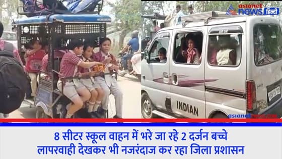 8 सीटर स्कूल वाहन में भरे जा रहे 2 दर्जन बच्चे, लापरवाही देखकर भी नजरंदाज कर रहा जिला प्रशासन