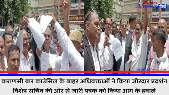वाराणसी बार काउंसिल के बाहर बुधवार को अधिवक्ताओं ने जोरदार प्रदर्शन किया। विशेष सचिव की ओर से जारी पत्रक को आग के हवाले किया। अधिवक्ताओं ने पूरे प्रदेश में 20 मई को प्रदर्शन करने का ऐलान किया।