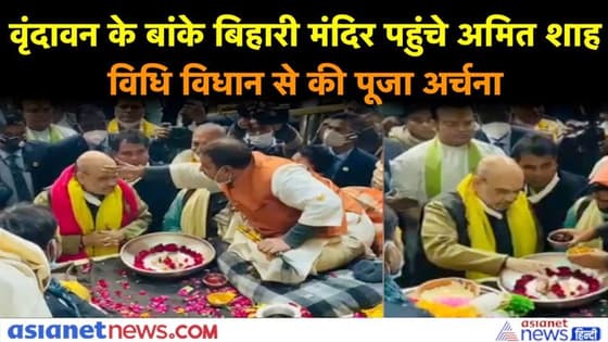 वृंदावन के बांके बिहारी मंदिर पहुंचे अमित शाह, विधि विधान से की पूजा अर्चना