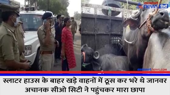 स्लाटर हाउस के बाहर खड़े वाहनों में ठूस कर भरे थे जानवर, अचानक सीओ सिटी ने पहुंचकर मारा छापा