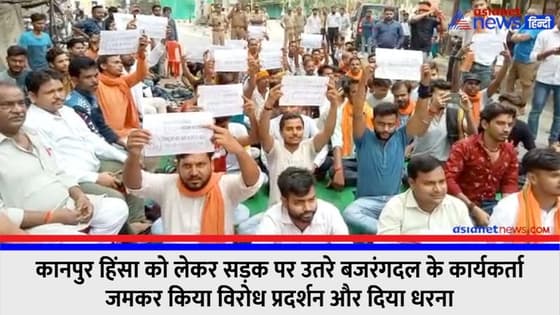कानपुर हिंसा को लेकर सड़क पर उतरे बजरंग दल के कार्यकर्ता, जमकर किया विरोध प्रदर्शन और दिया धरना