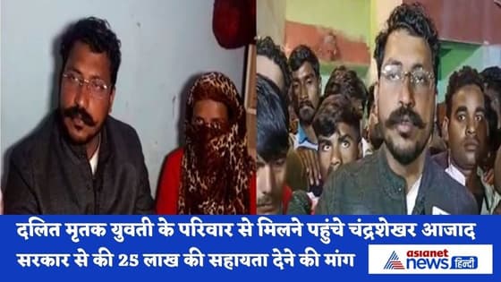 दलित मृतक युवती के घर पहुंचे चंद्रशेखर आजाद,सरकार से की 25 लाख की आर्थिक सहायता देने की मांग
