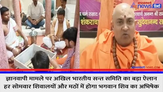ज्ञानवापी मामले पर अखिल भारतीय संत समिति का ऐलान किया गया है कि हर सोमवार को मठों में अभिषेक किया जाएगा और भगवान शिव की पूजा पाठ की जाएगी न्यायालय में जल्द ही इस मामले का समाधान हो इसके लिए इस उपासना का ऐलान संत समिति द्वारा किया गया है। ज्ञानवापी प्रकरण के बाद मंदिरों में यह विशेष अनुष्ठान किया गया है।
