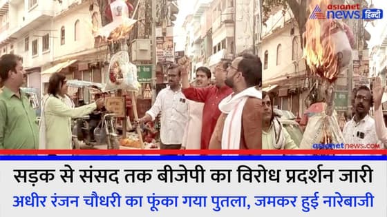 अधीर रंजन चौधरी के द्वारा राष्ट्रपति द्रौपदी मुर्मू को राष्ट्रपत्नी बोले जाने के मामले में बीजेपी नेताओं की नाराजगी लगातार जारी है। इसी कड़ी में वाराणसी में विरोध प्रदर्शन देखने को मिला और कांग्रेस नेता का यहां पुतला भी फूंका गया।
