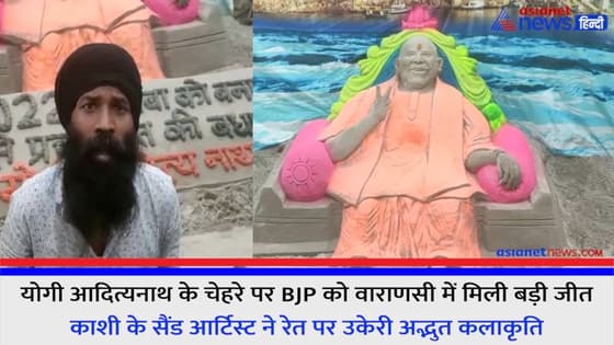 योगी के चेहरे पर BJP को वाराणसी में मिली बड़ी जीत, काशी के सैंड आर्टिस्ट ने रेत पर उकेरी अद्भुत कलाकृति