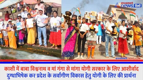 काशी में बाबा विश्वनाथ व मां गंगा से मांगा योगी सरकार के लिए आशीर्वाद, दुग्धाभिषेक कर योगी के लिए की प्रार्थना
