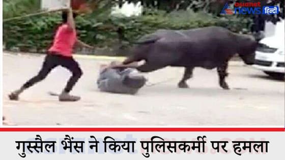 कोतवाली में घुसी बेकाबू भैंस ने दारोगा को सींग से उठाकर पटका, सामने आया डरावना वीडियो