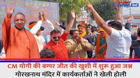 CM योगी की बम्पर जीत की खुशी में शुरू हुआ जश्न, गोरखनाथ मंदिर में कार्यकर्ताओं ने खेली होली