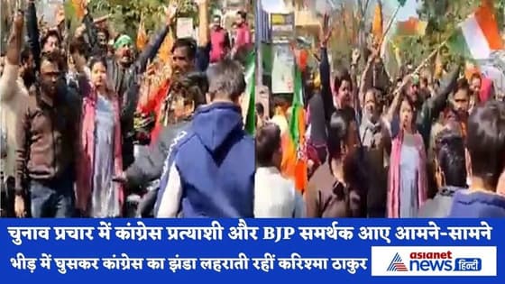 कांग्रेस प्रत्याशी और BJP समर्थक आए आमने-सामने, भीड़ में घुसकर कांग्रेस का झंडा लहराती रहीं करिश्मा ठाकुर