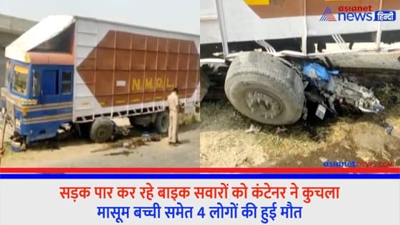सड़क पार कर रहे बाइक सवारों को कंटेनर ने कुचला, मासूम बच्ची समेत 4 लोगों की हुई मौत
