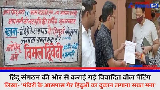 हिंदू संगठन की ओर से कराई गई विवादित वॉल पेंटिंग, लिखा- 'मंदिरों के आसपास गैर हिंदुओं का दुकान लगाना सख्त मना'