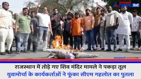 राजस्थान में तोड़े गए शिव मंदिर मामले ने पकड़ा तूल, युवामोर्चा के कार्यकर्ताओं ने फूंका सीएम गहलोत का पुतला