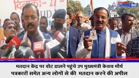 मतदान केंद्र पर वोट डालने पहुंचे उप मुख्यमंत्री केशव मौर्य, पत्रकारों समेत अन्य लोगों से की मतदान करने की अपील