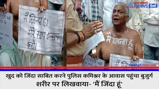खुद को जिंदा साबित करने पुलिस कमिश्नर के आवास पहुंचा बुजुर्ग, शरीर पर लिखवाया- 'मैं जिंदा हूं'