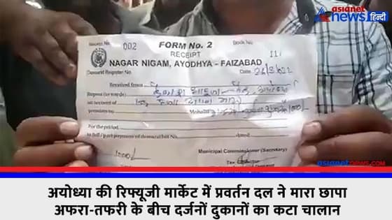 अयोध्या नगर निगम के प्रवर्तन दल ने चौक के रिफ्यूजी मार्केट में अचानक छापा मारा और लगभग दर्जनों दुकानों का चालान भी कर दिया। यह देख कर पूरे व्यापारी वर्ग में हड़कंप मच गया। तो वही व्यापारियों के दुकान के सामने बने चबूतरे को तोड़ने की खबर पर सैकड़ों व्यापारियों ने प्रदर्शन किया तथा लगभग आधे घंटे तक चौक का मुख्य मार्ग भी जाम कर दिया। मामले को बढ़ता देख कर पुलिस ने व्यापारियों को समझा कर रास्ते को सुचारु रुप से चालू करवाया।नगर निगम की ओर से मौके पर पहुंचे सहायक नगर आयुक्त हरिश्चंद्र सिंह ने मामले संभालते हुए व्यापारियों को शांत कराया तथा व्यापारियों की दुकानों पर जाकर समस्या को पूर्ण रूप से समझ कर व्यापारियों को आश्वस्त किया। वही व्यापारियों द्वारा सफाई को लेकर व्यवधान डाला जा रहा था। इस मामले की पूरी जांच नगर निगम की उच्च डेलिगेशन की टीम करेगी।विरोध कर रहे व्यापारी रोशन लाल ने आरोप लगाते हुए कहा कि हमें बिना सूचना के नगर निगम का प्रवर्तन दल हमारी दुकानों का चालान कर रहा है।लगभग दर्जनों दुकानों का चालान काट चुके हैं।