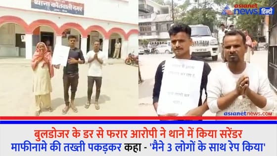 बुलडोजर के डर से आरोपी ने थाने में किया सरेंडर, माफीनामे की तख्ती लेकर कहा -मैने 3 लोगों के साथ रेप किया