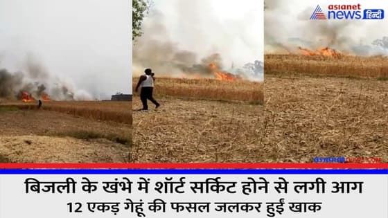 बिजली के खंभे में शॉर्ट सर्किट होने से लगी आग, 12 एकड़ गेहूं की फसल जलकर हुईं खाक, देखें वीडियो