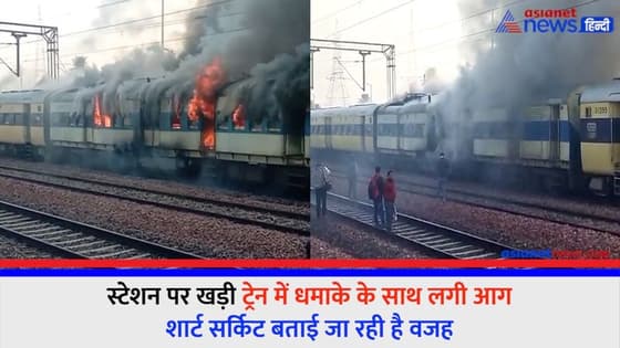 स्टेशन पर खड़ी ट्रेन में धमाके के साथ लगी आग, शार्ट सर्किट बताई जा रही है वजह, देखें वीडियो