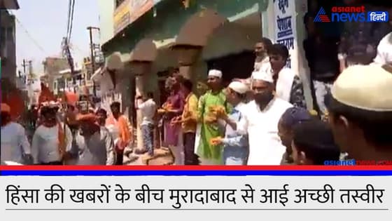 वीडियो डेस्क। हिंसा की खबरों के बीच एक अच्छी तस्वीर सामने आई है। मुरादाबाद में हनुमान जयंती के उपलक्ष में निकाले जा रहे जलूस में सांप्रदायिक सौहार्द की तस्वीर देखने को मिली। मुस्लिम बाहुल्य इलाके से निकाले गए जुलूस पर लोगों ने फूल डालकर स्वागत किया।