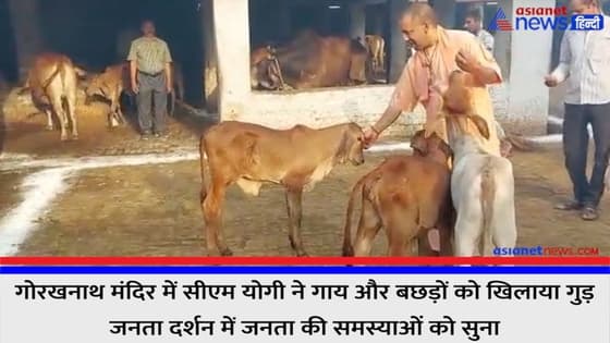 गोरखनाथ मंदिर में सीएम योगी ने गाय और बछड़ों को खिलाया गुड़, जनता दर्शन में जनता की समस्याओं को सुना