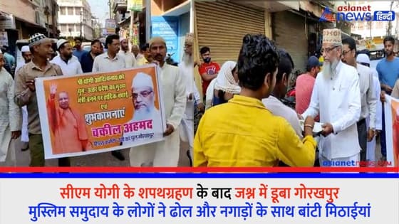 CM योगी के शपथग्रहण के बाद गोरखपुर में दिखा जश्न, मुस्लिमों ने ढोल और नगाड़ों के साथ बांटी मिठाइयां