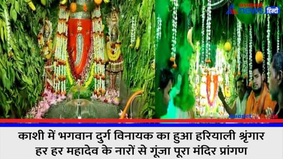 उत्तर प्रदेश की विश्वनाथ की नगरी काशी में बुधवार को भगवान दुर्ग विनायक का हरियाली श्रृंगार किया गया है। इसके साथ ही हर हर महादेव के नारों से मंदिर का पूरा प्रांगण गूंज उठा। पूरे मंदिर को फूल- पत्तियों से सजाया गया था। मंदिर के पट खुलते ही भक्तों की लाइन उमड़ पड़ी।