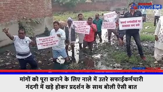 मांगों को पूरा कराने के लिए नाले में उतरे सफाई कर्मचारी, गंदगी में खड़े होकर प्रदर्शन के साथ बोली ऐसी बात