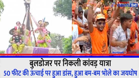 हरदोई: बुलडोजर पर निकली कांवड़ यात्रा, 50 फीट की ऊंचाई पर हुआ डांस, भगवान शिव की वेशभूषा में रहे भक्त