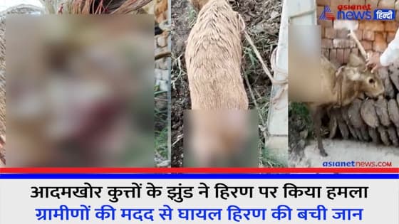 आदमखोर कुत्तों के झुंड ने हिरण पर किया हमला, ग्रामीणों की मदद से घायल हिरण की बची जान